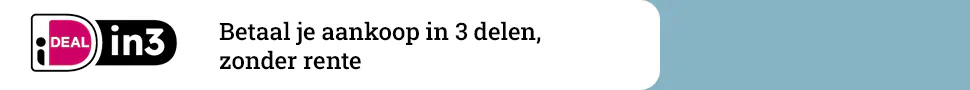 Nu ook mogelijk om in 3 termijnen te betalen met iDEAL in3: Met iDEAL in3 betaalt u uw online aankopen in drie termijnen, zonder extra kosten. Zo doet u grotere aankopen zonder direct impact op uw bankrekening. Bij het afrekenen kiest u voor iDEAL in3, betaalt u de eerste termijn en ontvangt u direct uw bestelling. De volgende termijnen worden automatisch na 30 en 60 dagen afgeschreven.
