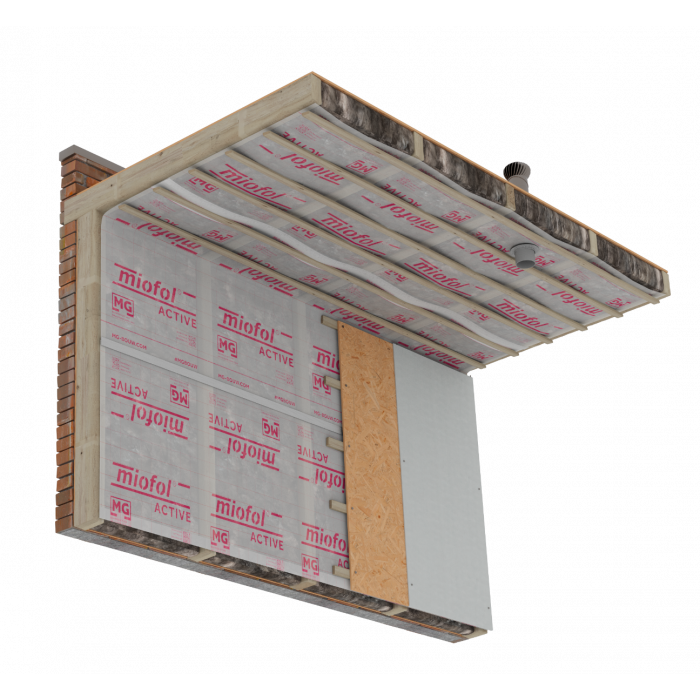 Miofol® Active wordt toegepast in wand- en dakconstructies. Miofol® Active wordt toegepast aan